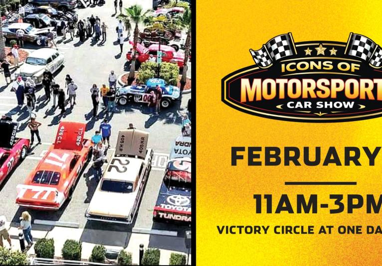 Rev up for the Icons of Motorsports Car Show at ONE DAYTONA in Victory Circle, directly across from Daytona International Speedway, this show features an exclusive showcase of vintage race cars, each with its own piece of motorsports history.
